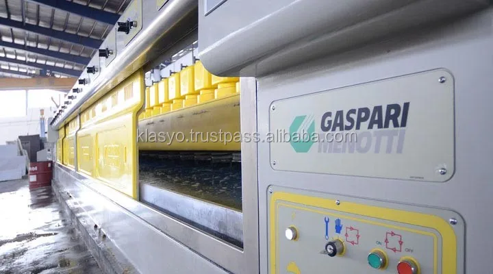 Once the blocks are at the factory raw marble stone blocks are kept in very specific storage conditions until selected by the customers. Once selected the blocks are converted by the gang saw into the exact dimensions and thickness required by the customer. In the finishing area the slab is laid face down and a machine with a diamond-encrusted abrasive pad grinds down the slab surface until it is smooth. A uniform coat of epoxy sealer is sprayed onto the surface and leaves it to dry for 48 hrs. This process is repeated on the other side and then ready to be shipped to our customers.