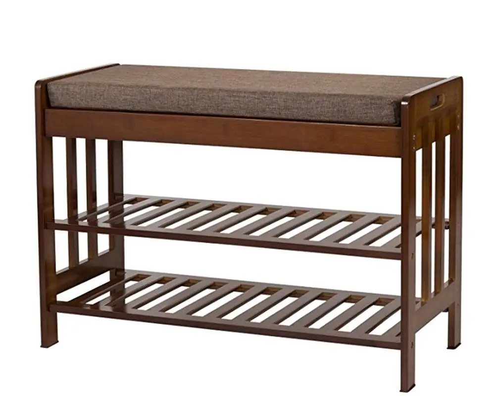 Натуральная полка для хранения в прихожей домашняя скамейка Бамбуковая обуви с подушкой