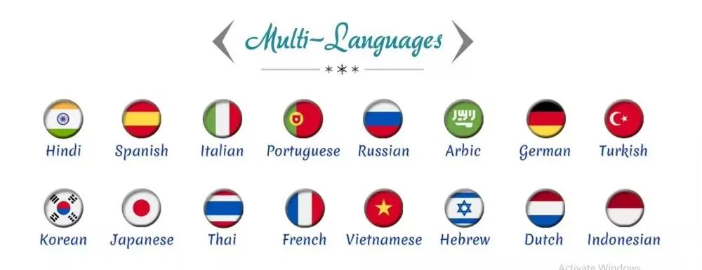 Hindi | Spanish | Italian | Portuguese | Russian | Arbic | German | Turkish |