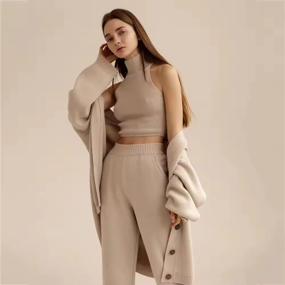 Джемпер на заказ 3 предмета вязаный кашемировый комплект свитер пикантный жилет с высоким воротником длинные брюки кардиган вязаная одежда женского свитера большого размера
