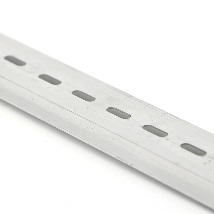 35/7.5 pre-punched din rail :A 35/7.5 pre-punched din rail is a metal rail of a standard type widely used for mounting circuit breakers and industrial control equipment inside equipment racks. These products are typically made from cold rolled carbon steel sheet with a zinc-plated and chromated bright surface finish. The term derives from the original specifications published by Deutsches Institut für Normung (DIN) in Germany