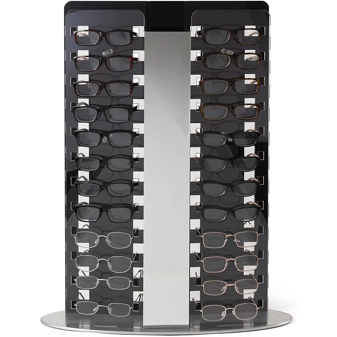 Стойка для оптического дисплея столешницы, 24 слота рамы, зеркало просмотра-черный и прозрачный