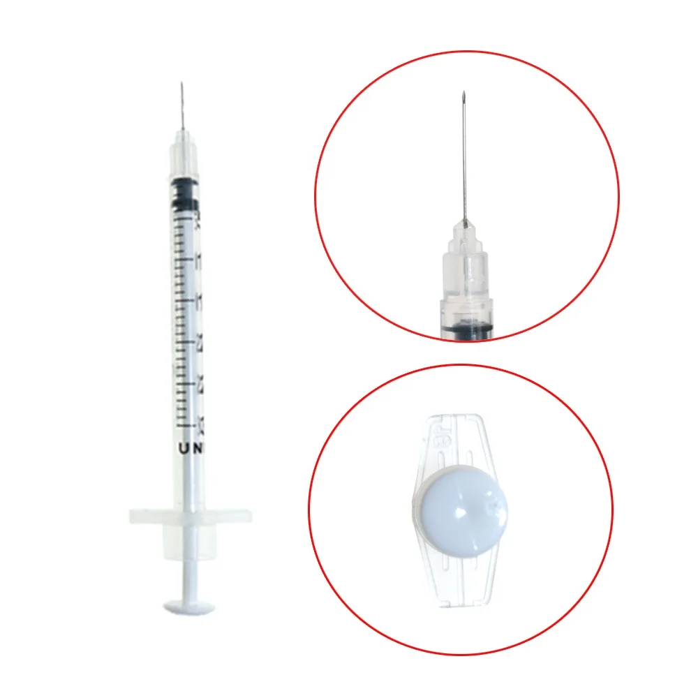 1 мл цветной одноразовый защитный инсулин шприц с фиксированной иглой