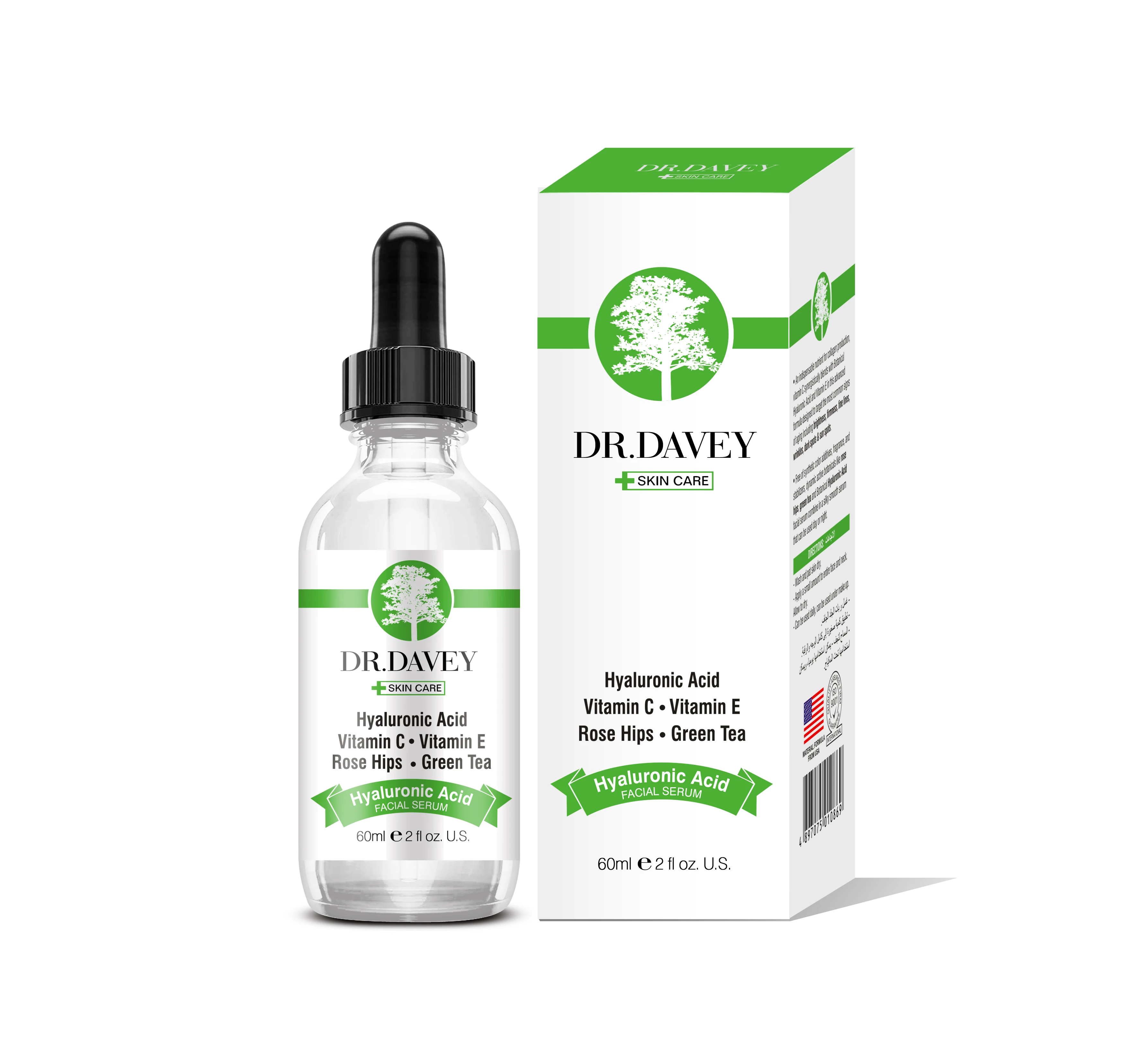 DR.DAVEY, гиалуроновая кислота, витамин C. Витамин E. Розовые бедра. Сыворотка для лица с зеленым чаем для подтяжки кожи 60 мл