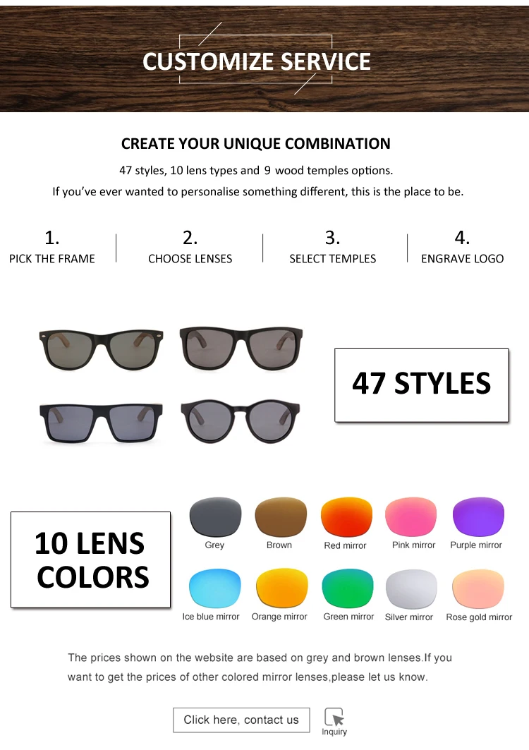 Product name | Hot selling wooden sunglasses custom polarized mirror lens wood bamboo sunglasses | |||||||