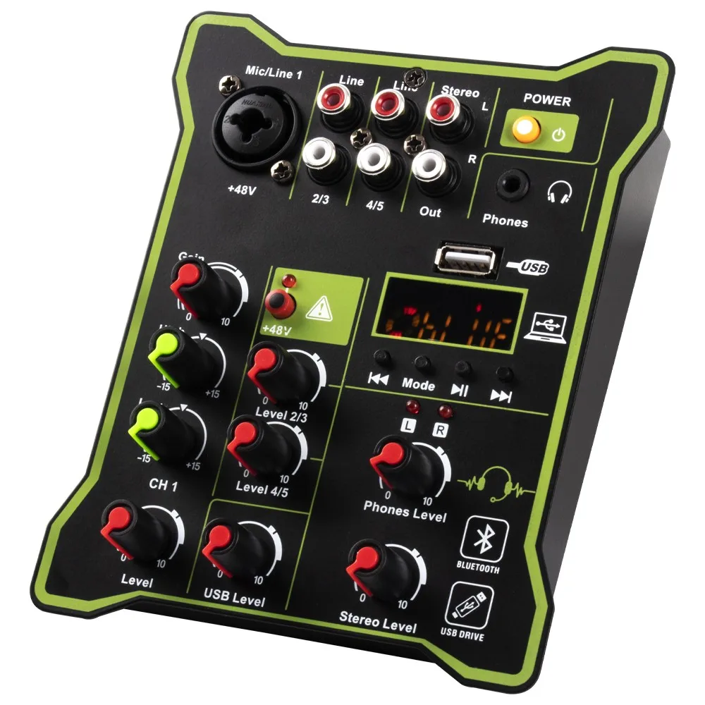 Профессиональный микшер 5-канальный USB Bluetooth высокий и низкий Многофункциональный диджейский компьютерный сценический записывающий мини