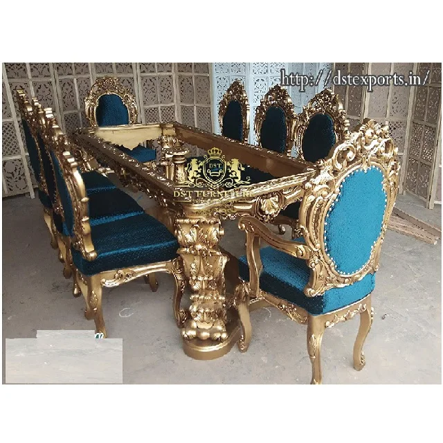 Купить из чешского стекла и 10-местный обеденный стол набор премиум-класса резной высокий с глянцевым покрытием Королевский Павлин резьба