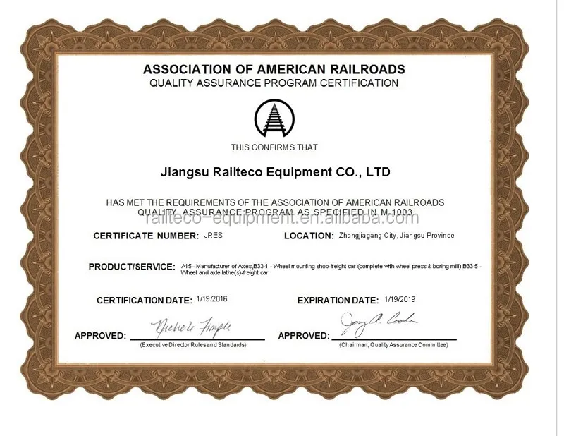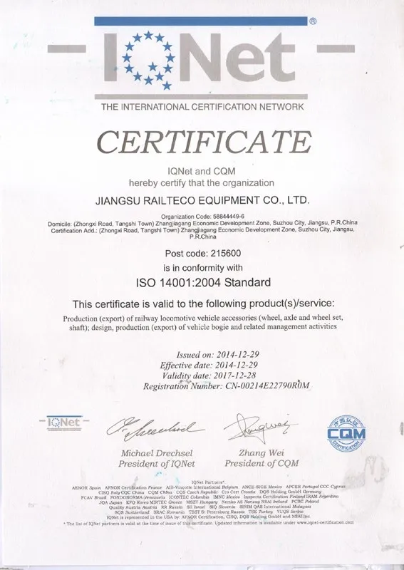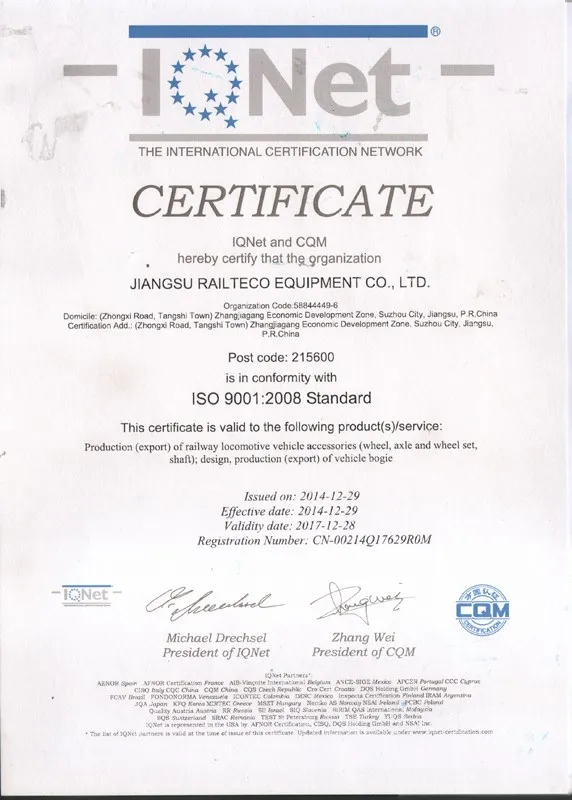 Railteco's production and quality control procedures fully according to ISO and client request international standards: IRIS, TSI, AAR and etc.