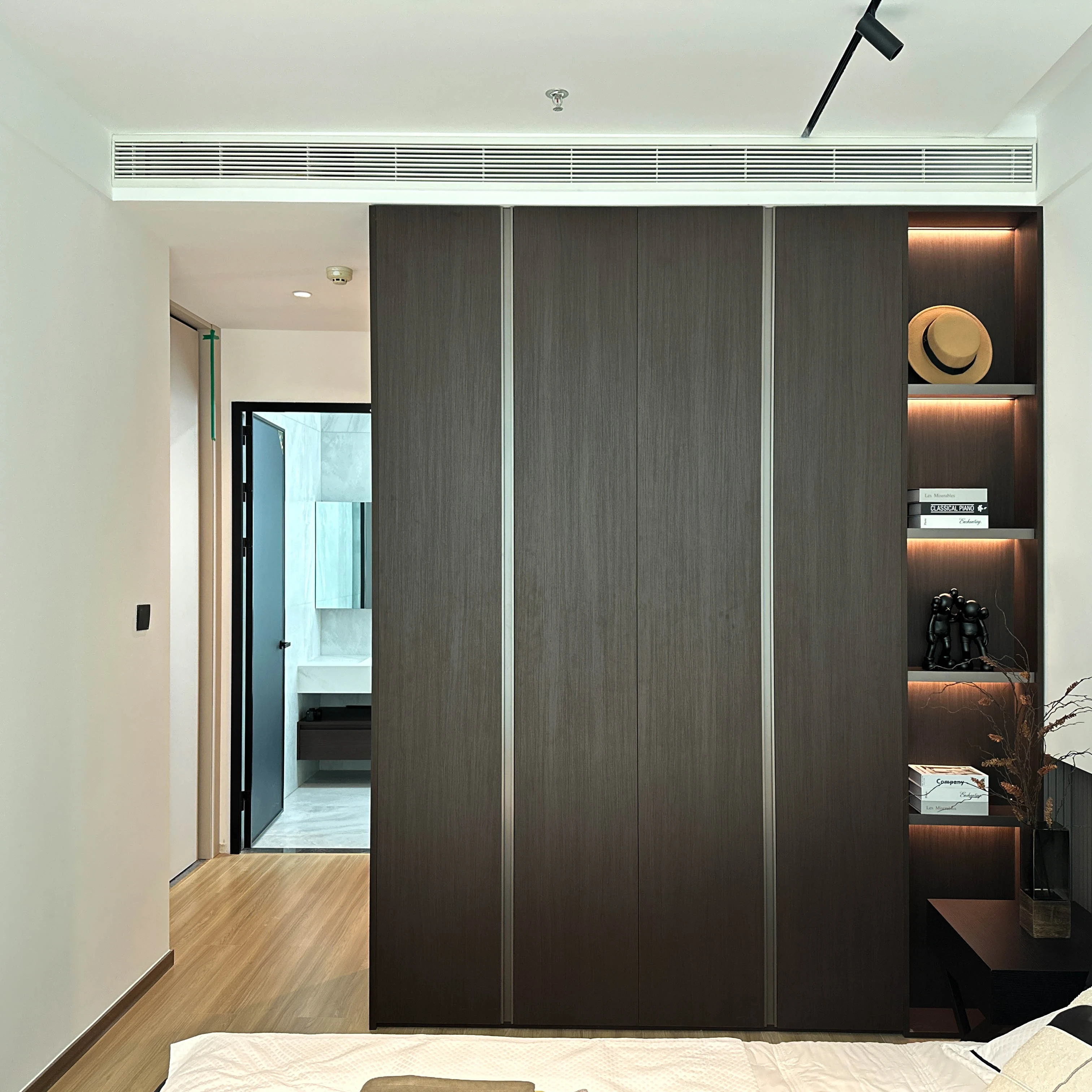 Современная раздвижная дверь из закаленного стекла на заказ, шкафы для спальни, шкафа со светодиодными лампами