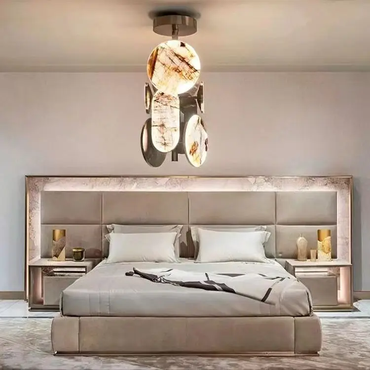 Современная мебель для спальни с роскошной двухместной кроватью из нубука