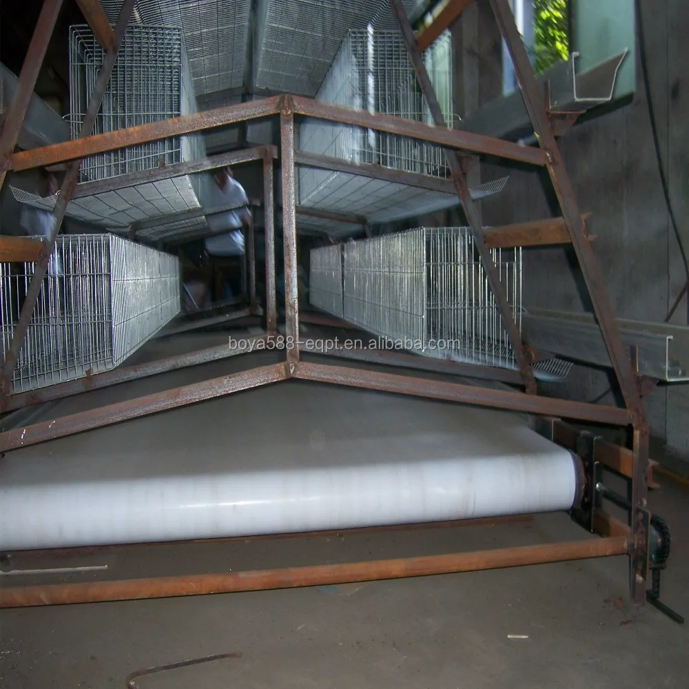 Для каркаса курятника слой батареи клетки, как правило, с помощью скребок для удаления навоза из-за его низкой стоимости. Но медленно навозный пояс приемлем для многих клиентов.