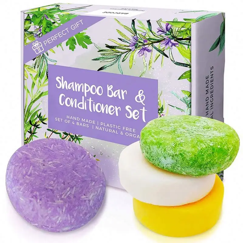 Мыло ручной работы, веганское кокосовое масло, натуральный и органический шампунь для волос, шампунь без отходов, кондиционер, подарочный набор, 4 бара