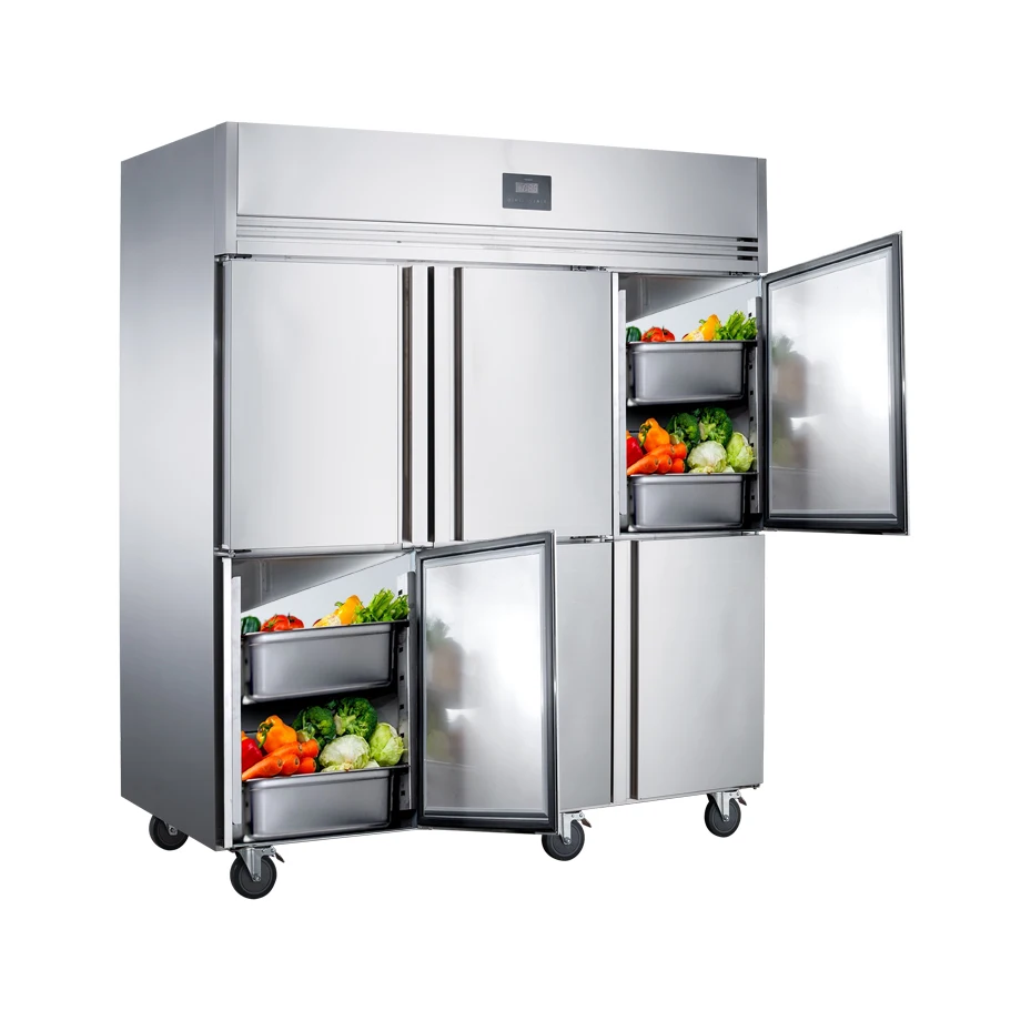 Ресторан кейтеринг нержавеющая сталь вертикальный 6 дверей статическое охлаждение коммерческий холодильник с морозильной камерой