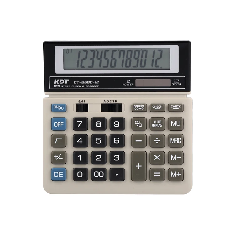 Пользовательский 12-значный цифровой солнечный калькулятор 120 шаговый Пластиковый прибор с батарейным питанием функцией автозапуска для школьного использования