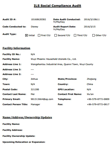A: Yes, we pass the BSCI, SEDEX, ILS audit, All our products are LFGB approval