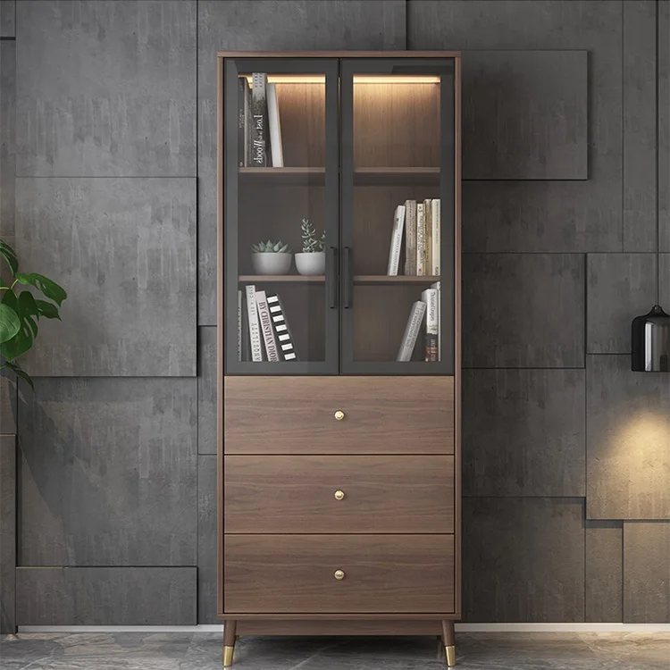 Современный скандинавский книжный шкаф со стеклянной дверью полка из массива дерева для домашнего хранения комбинированная книжная и 12 051,46 ₽ - 12 819,00 ₽