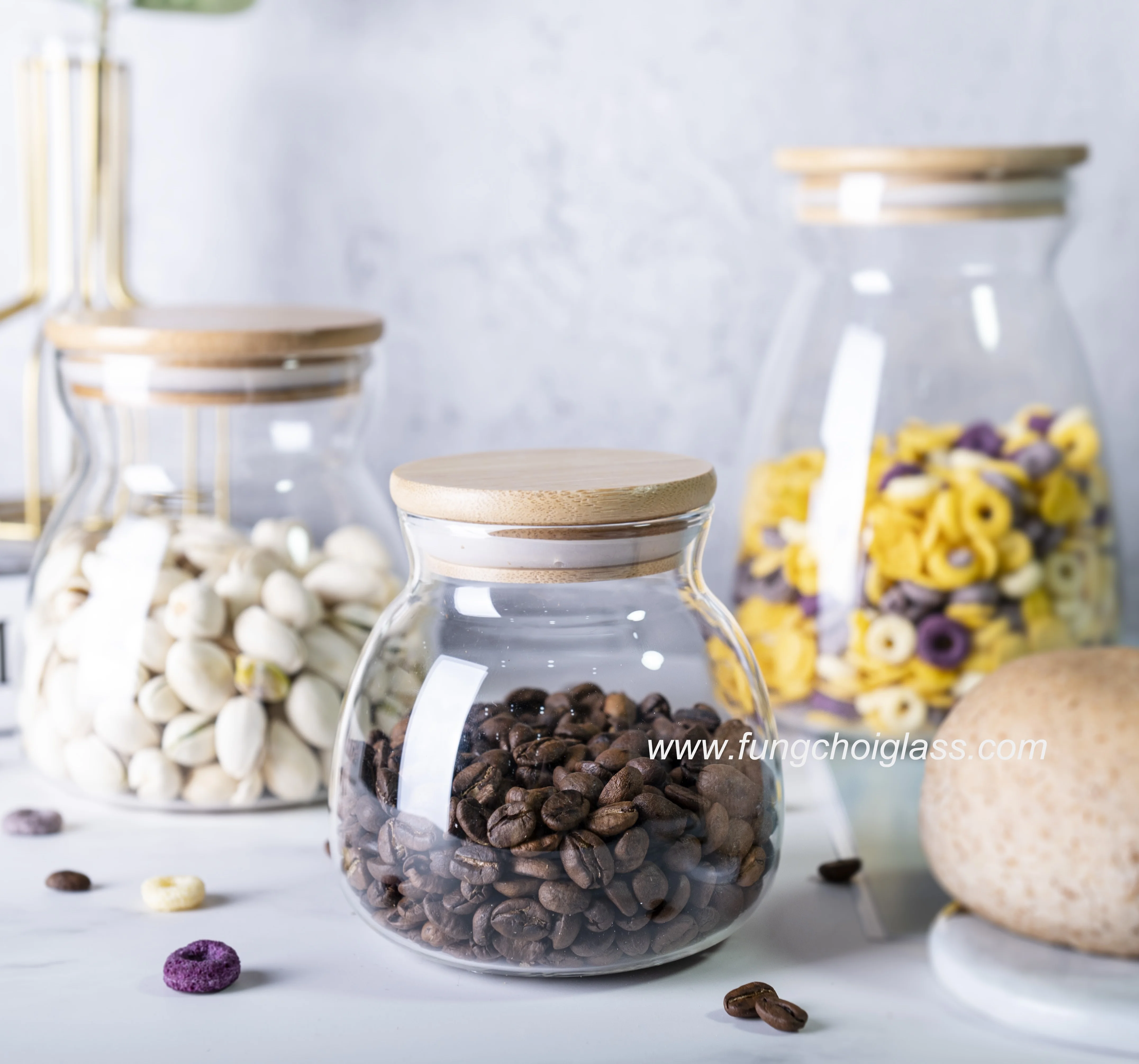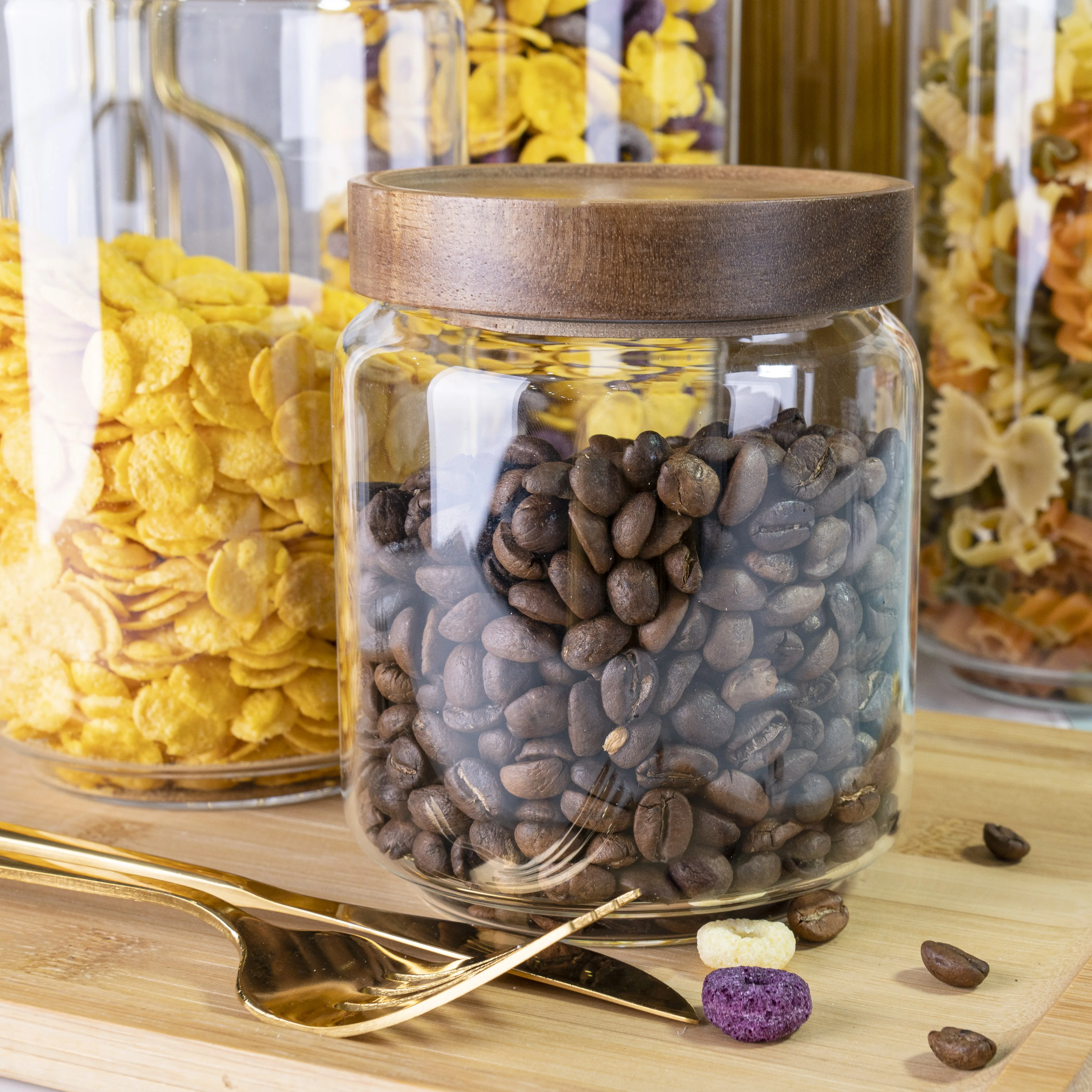 500 мл прозрачные воздухонепроницаемые боросиликатные кофейные бобы лапша орехи стеклянная банка для хранения с бамбуковой крышкой
