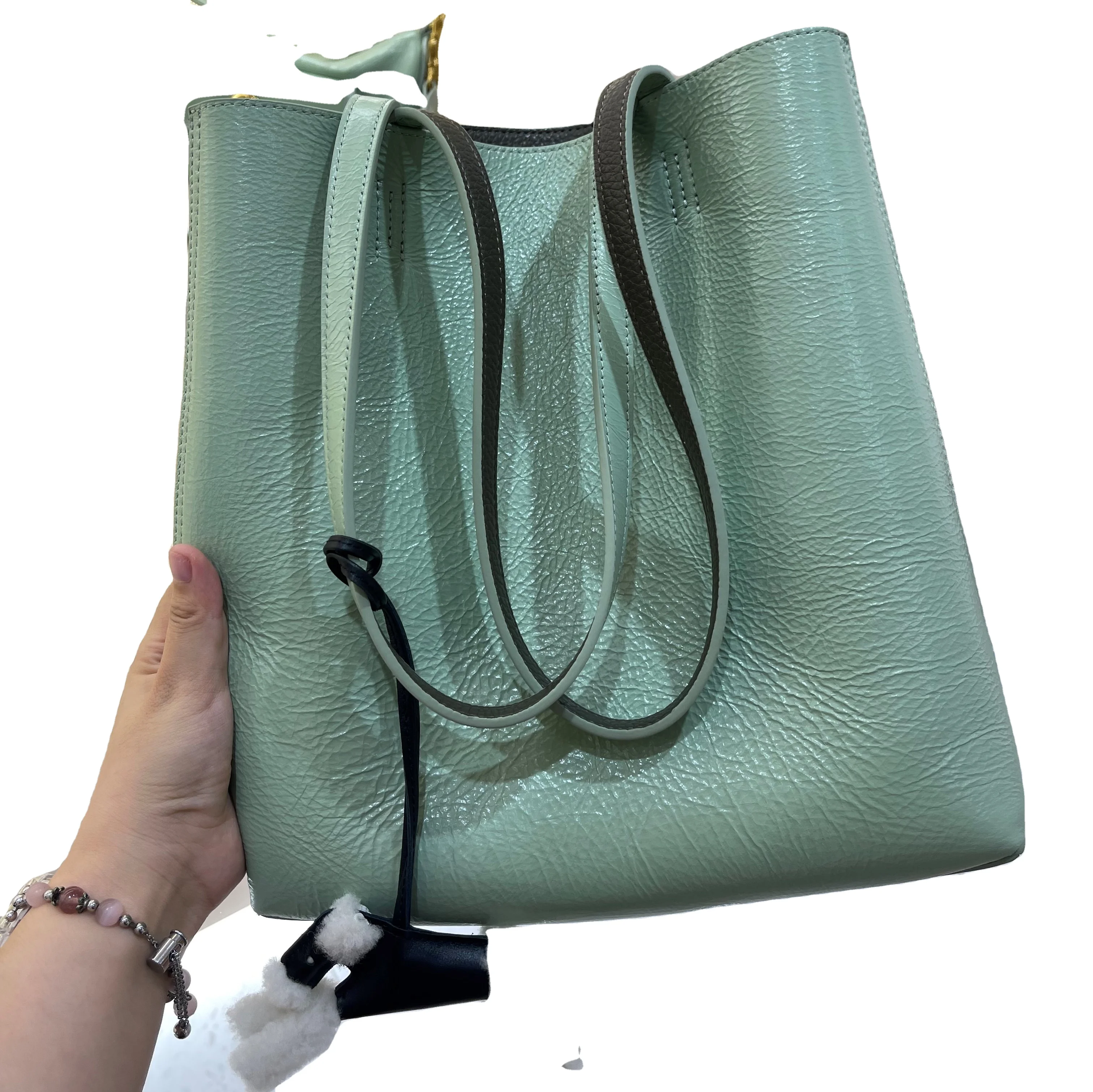 Двухсторонняя Сумка-тоут из воловьей кожи с положительным и отрицательным результатом для отдыха простая сумка на плечо 2024