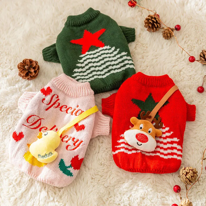 Осень и зима собака Рождество Хэллоуин праздничный вязаный свитер лося Новогодняя одежда для собак