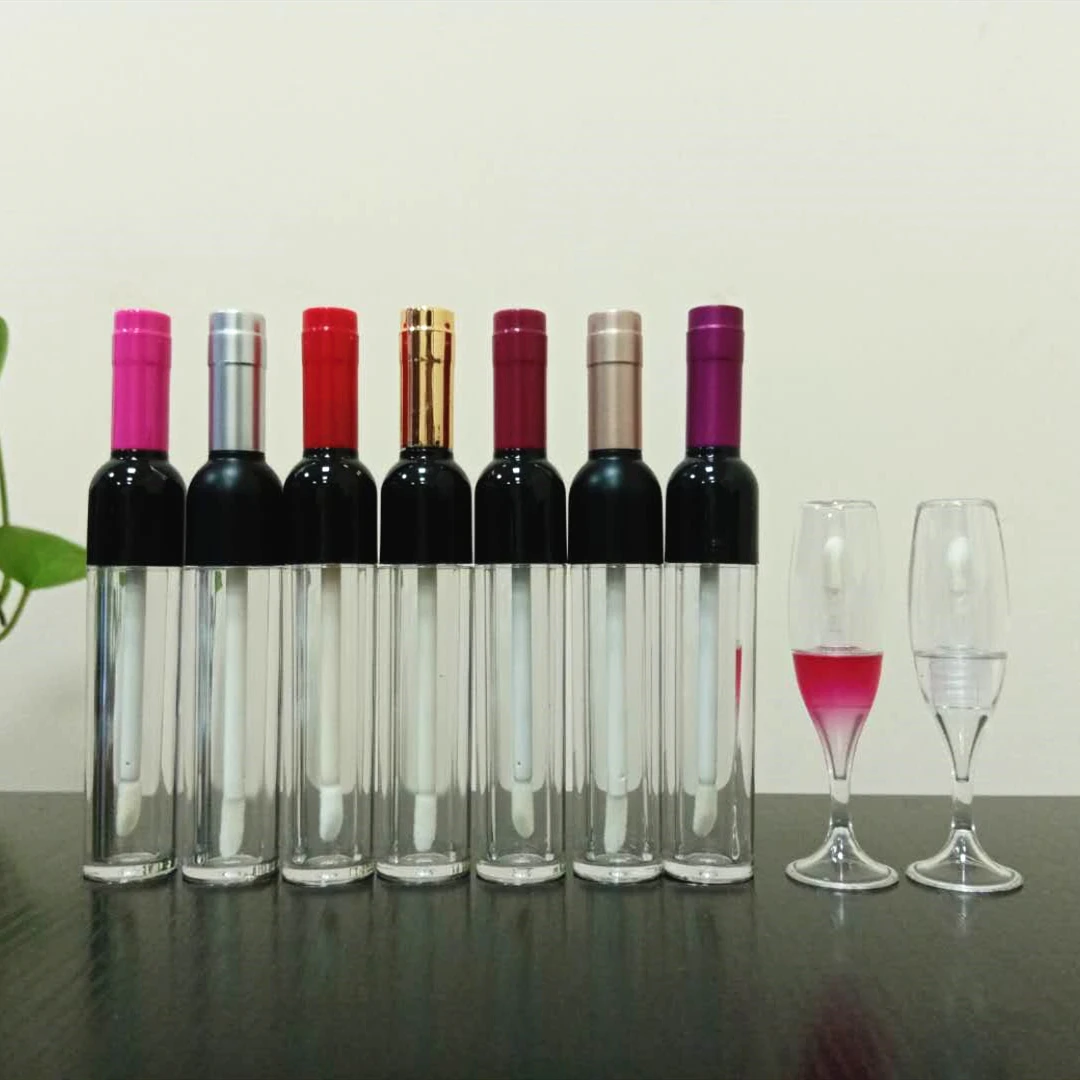 Пустая Роскошная прозрачная розовая фиолетовая Серебристая бутылка для красного вина, упаковка для блеска для губ, милые уникальные золотые контейнеры для блеска для губ для детей 5 мл