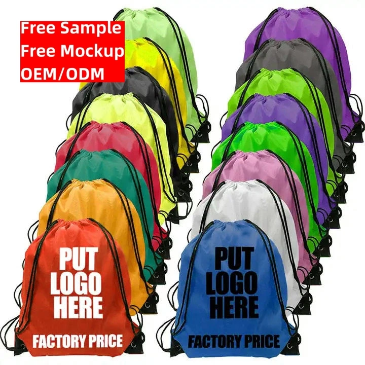 Оптовая продажа индивидуальная рекламная сумка полиэфирная нейлоновая на завязках магазин и рюкзак сумки с индивидуальными логотипами