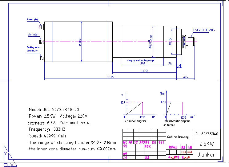 For the same outer diameter 80, we have 3 different kinds with different rotation speed and power. Please see the drawings below.