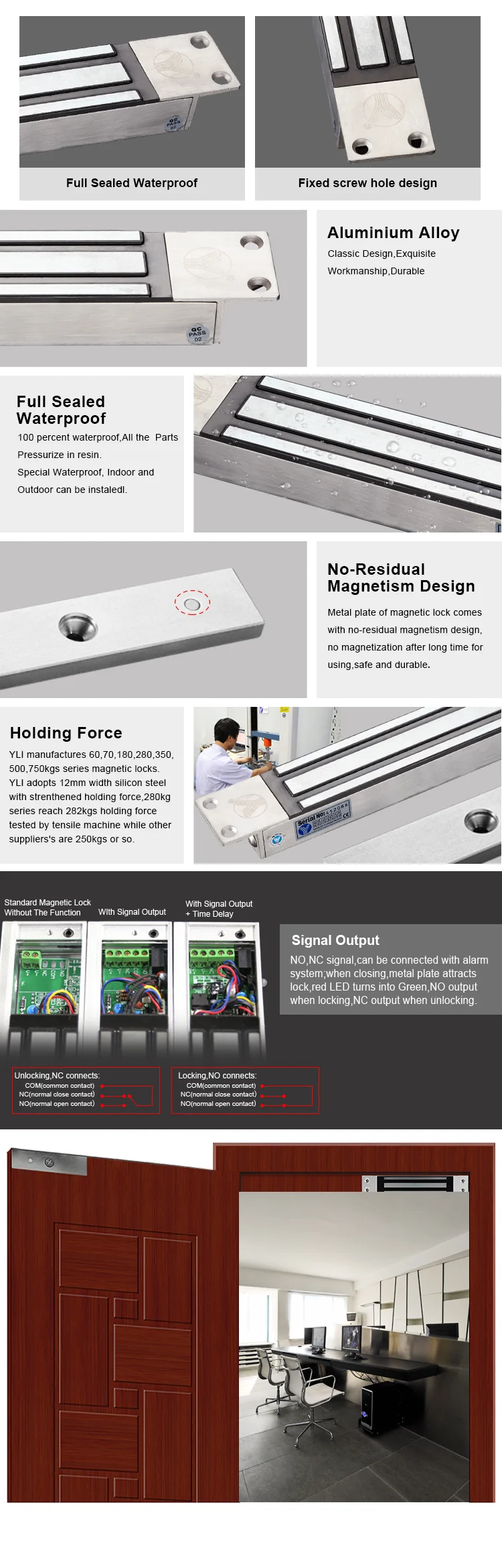 Single door electric lock with mortise mount .A lo of different doors are allowed to install. Special anti-residual magnetism designed makes the access control automation safer and electric lock more durable.