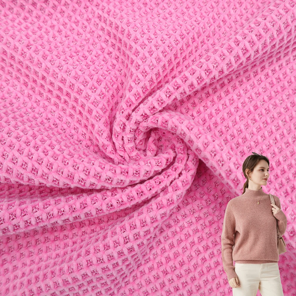 Ткань заводская цена дизайн многоцветный Розовый оптовая продажа Полиэстеровая однотонная трикотажная ткань из синели для одежды 341,13 ₽ - 346,63 ₽