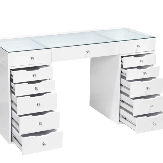 Лидер продаж, новый дизайн, деревянный туалетный столик с 13 ящиками, прозрачный стеклянный туалетный столик