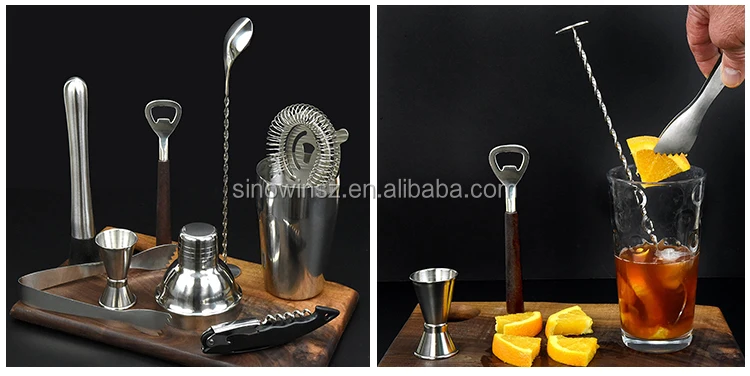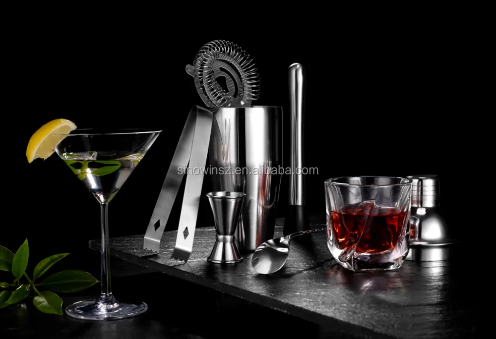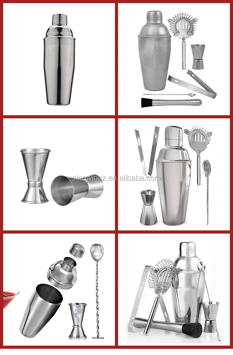 Feature | (1) FEATURES: 3 -5 pieces stainless steel cocktail shaker set includes a large 24 oz 750 ml boston tin that can hold up to three drinks with a built in strainer lid /a beautiful twisted mixing bar spoon / a premium double size 1.5 / 0.75 oz measurement jigger tool / hight quality ice tong / Strainer / Muddler .