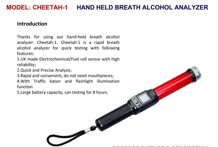 Advantage | Cheetah No.1 can test the individual without needing to do any blowing.It can detect alcohol levels automatically through the breath. |
