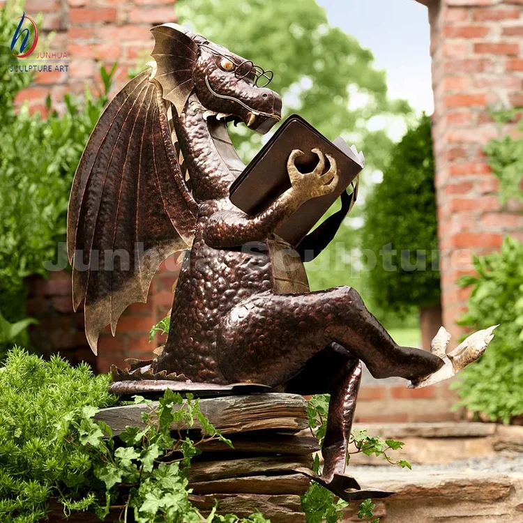 Бронзовая скульптура монстра в западном стиле Бронзовая статуя дракона книга для чтения