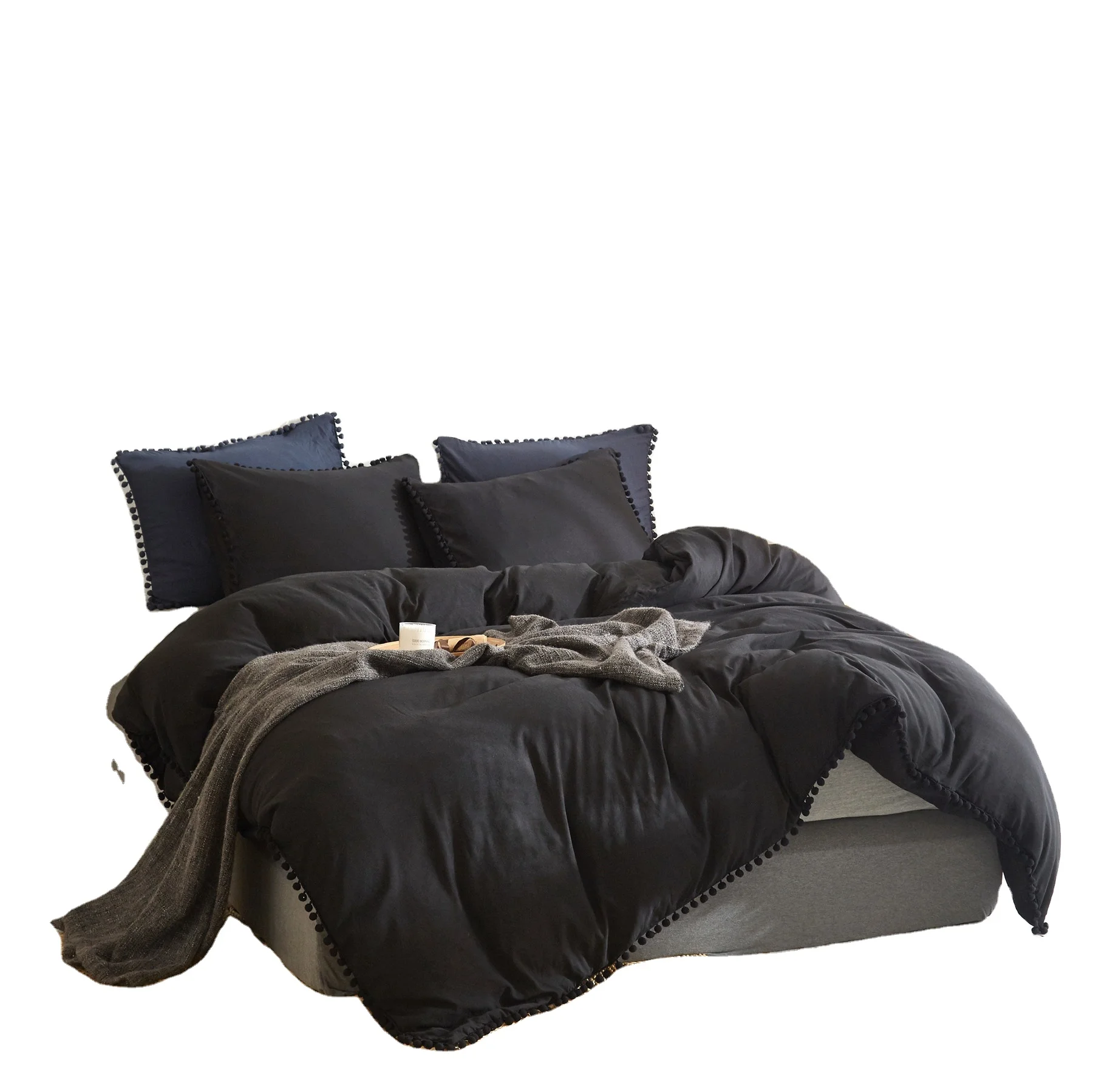 Набор постельного белья Amazon в американском стиле с помпоном в стиле бохо, постельное белье из мытой микрофибры, набор простыней с бахромой и кисточками