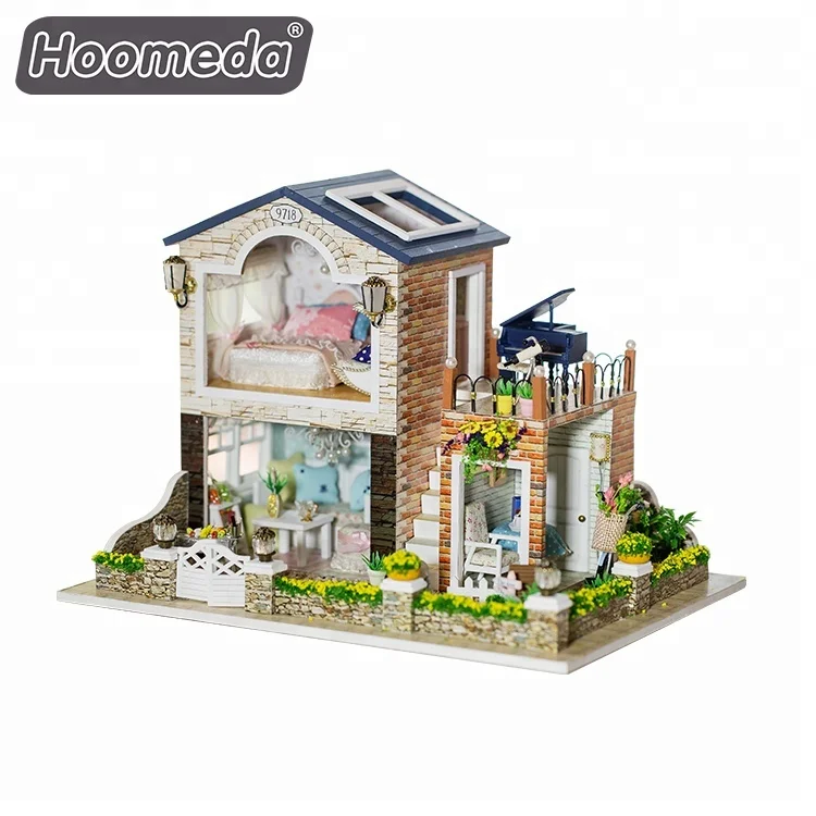 With light and music wooden dollhouse furniture set kit dollhouse diy