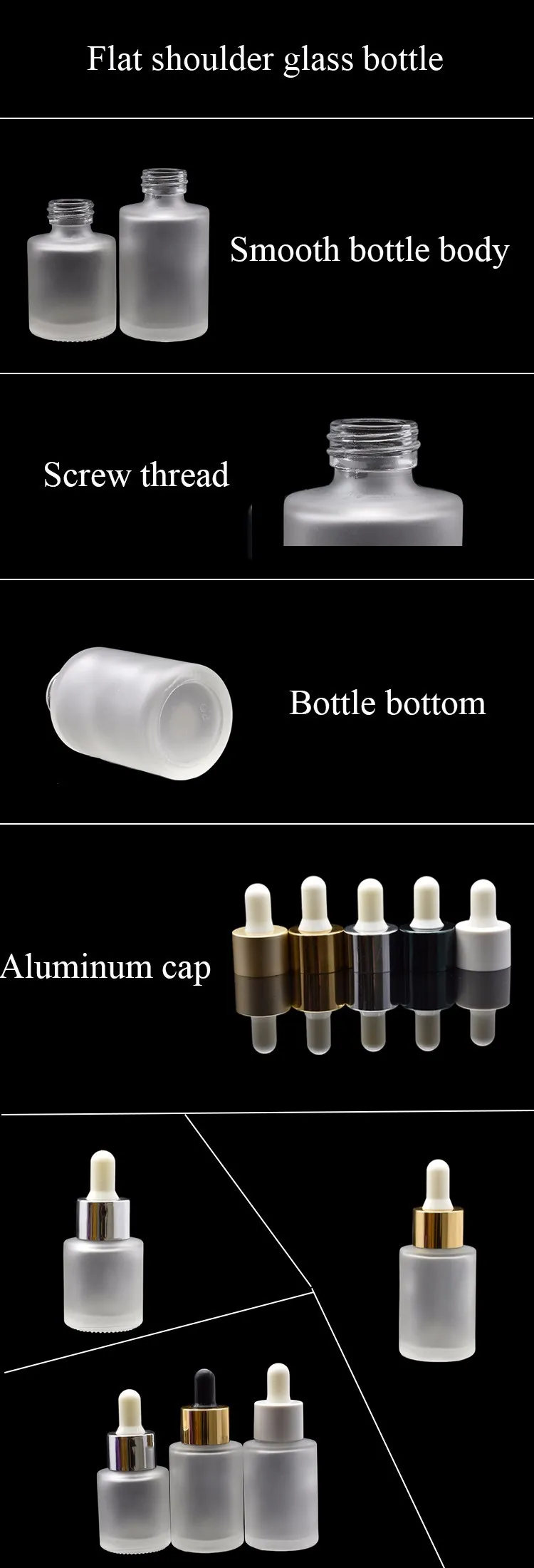 cosmetic 10ml 20 ml 30 ml 50 ml transparent clear frosted flat shoulder glass bottle for essential oil