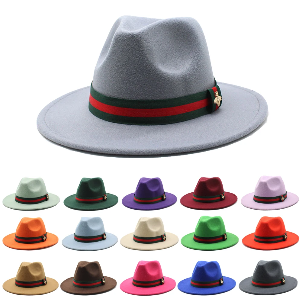 Оптовая продажа винтажная шляпа Федора с широкими полями однотонные шляпы из шерсти и