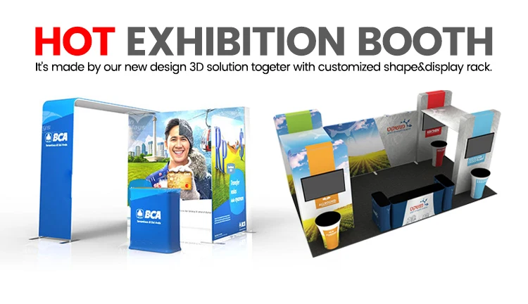 Мы обслуживаем 10 футов * 10 футов и 10 футов * 20 футов выставочные стенды, а также индивидуальные уникальные, все товары могут храниться в рекламных прилавках, таким образом, это будет очень удобно для вас, и они определенно будут подходить на любой ярмарке по всему миру.