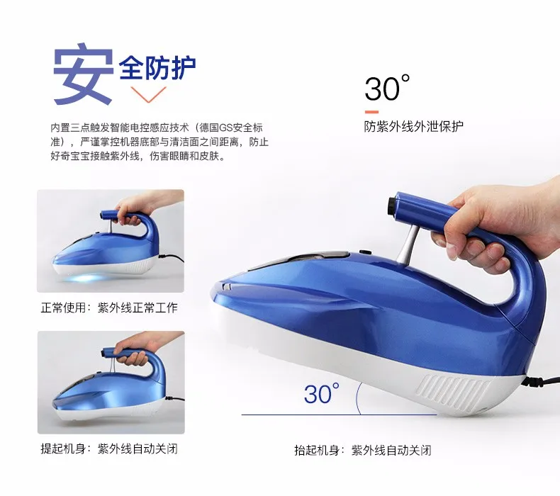 Светодио дный индикации для ультрафиолетовых лучей 4 м шнур с вилкой VDE HEPA фильтр UV-C технологии Две маленькие кисти в нижней части Специальная функция вибрации CE, GS, EMC, ERP, LVD, PAHS, ROHS одобрение