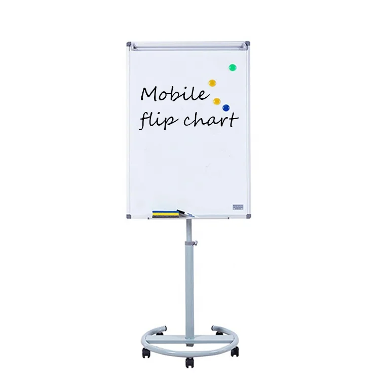 Hot selling school office height adjustable magnetic whiteboard flipchart easel mobile white board flip chart stand with wheels