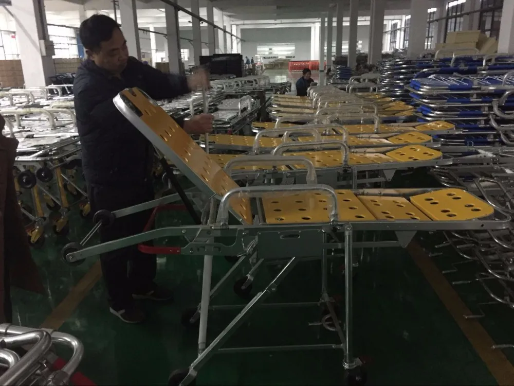 1. Both ends can be tilted the height can be adjusted twelve high positions. When loading the old ambulance stretcher up to the ambulance.