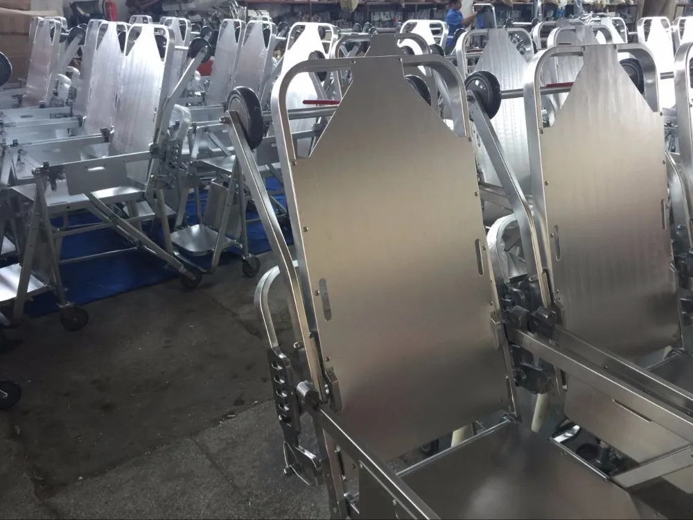 6. The mechanical folding legs are controlled by the handles on both sides. The old ambulance stretchers can be locked up after being aboard through the chute.