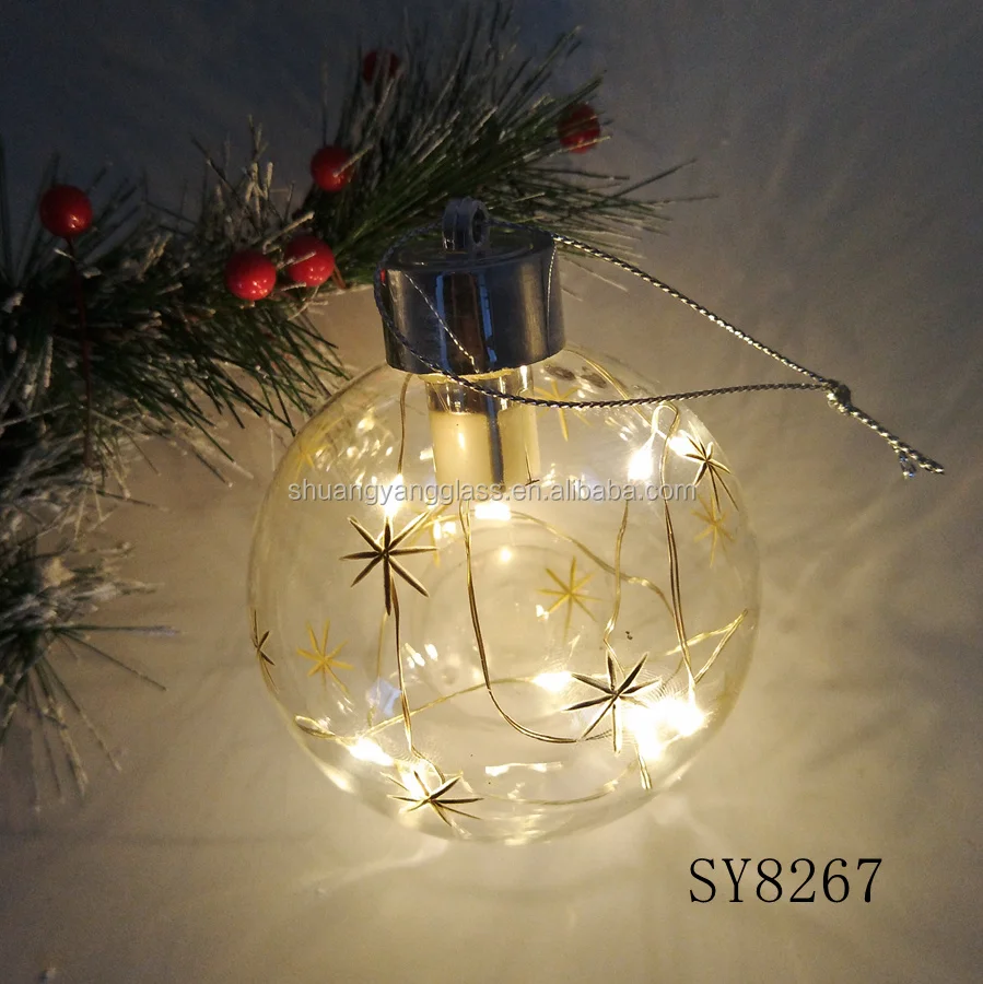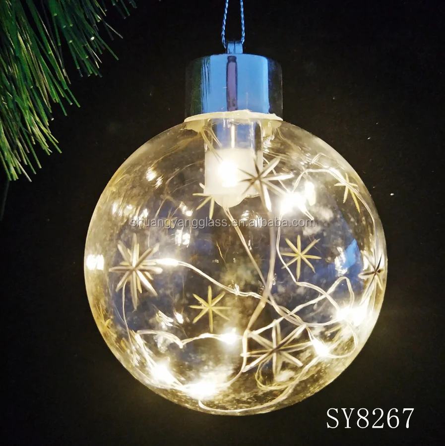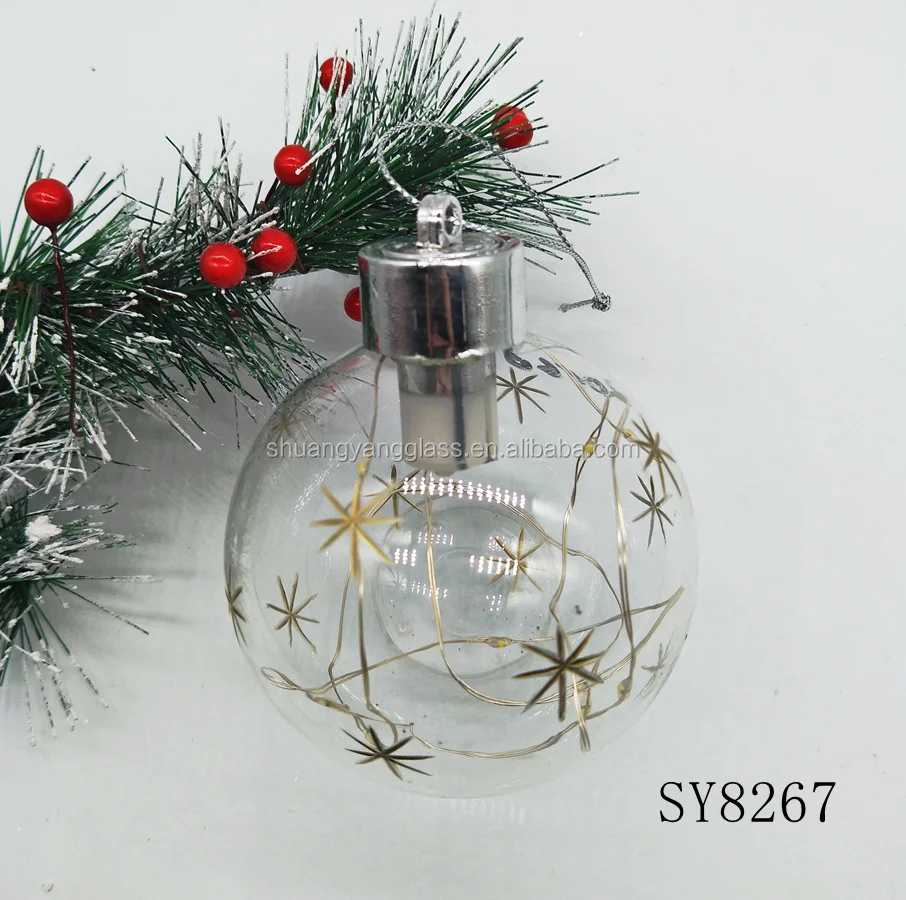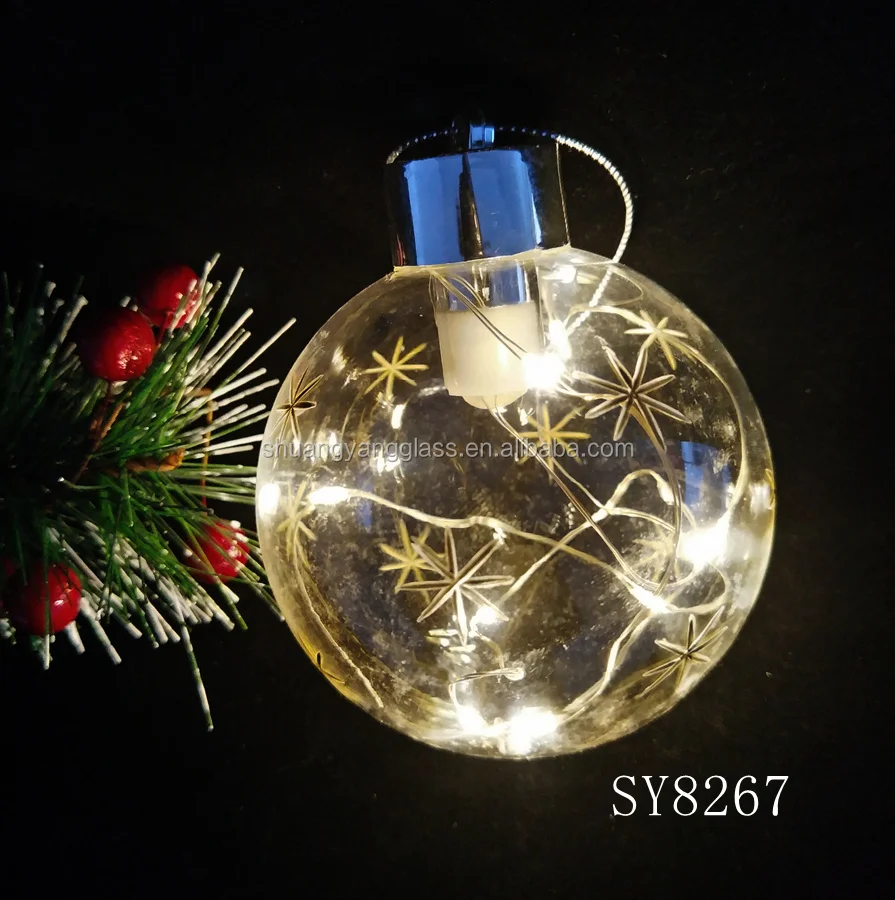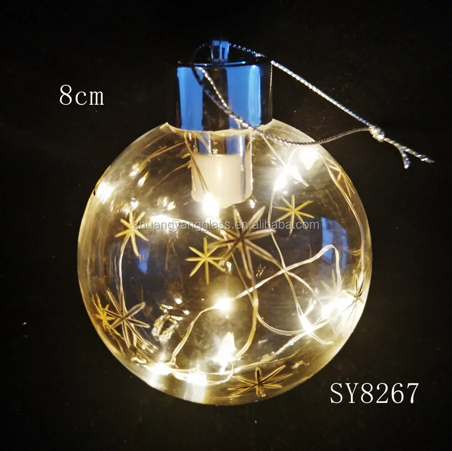 80mm LED blown glass christmas hanging ball for indoor decoration