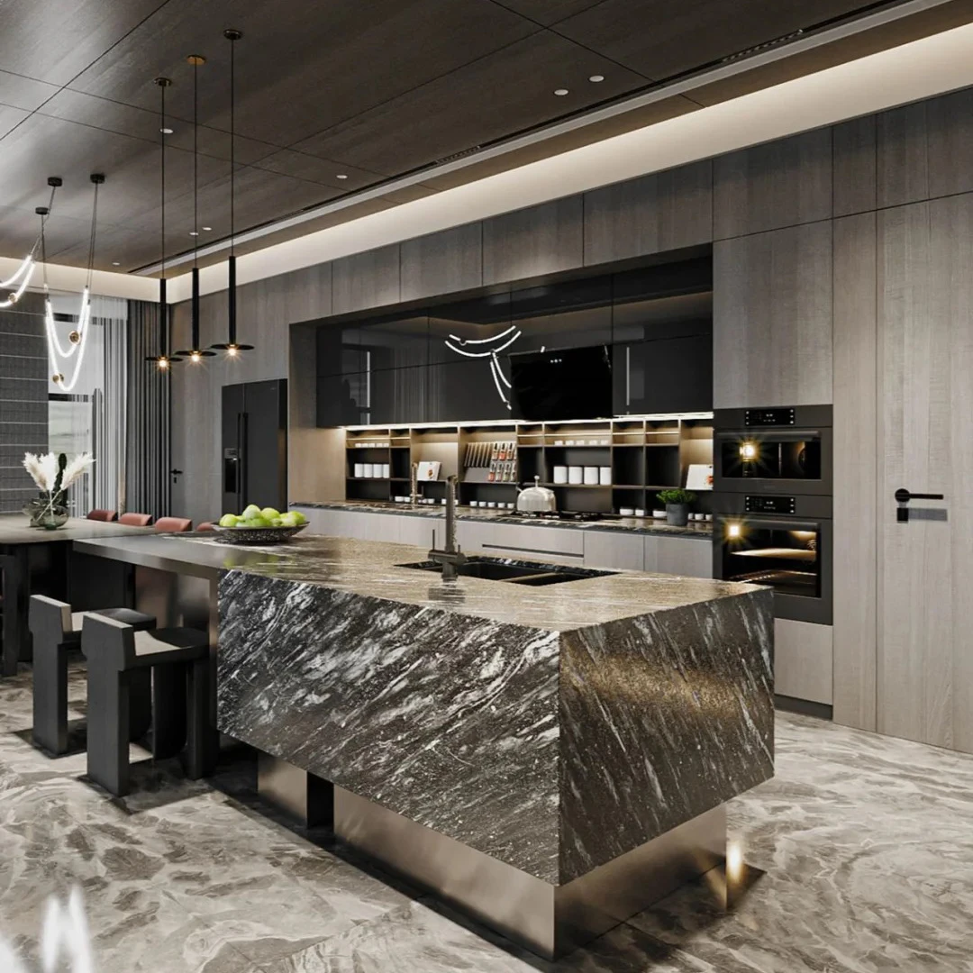 Китайский производитель кухонные шкафы комплектные наборы оптовая продажа современные с островным столом
