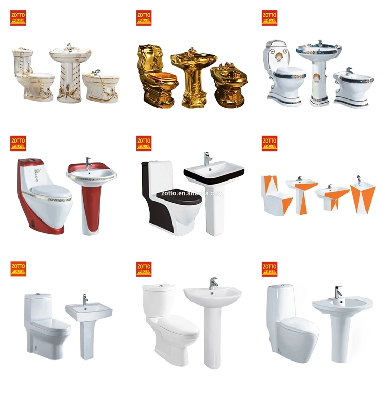 Famous brand Luxury western washdown toilet elegant modern gold commode set colorful ceramic bathroom set customized wc toilet