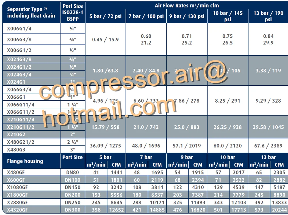 Technical Data - Compressed Air Condensate Separators - X Series