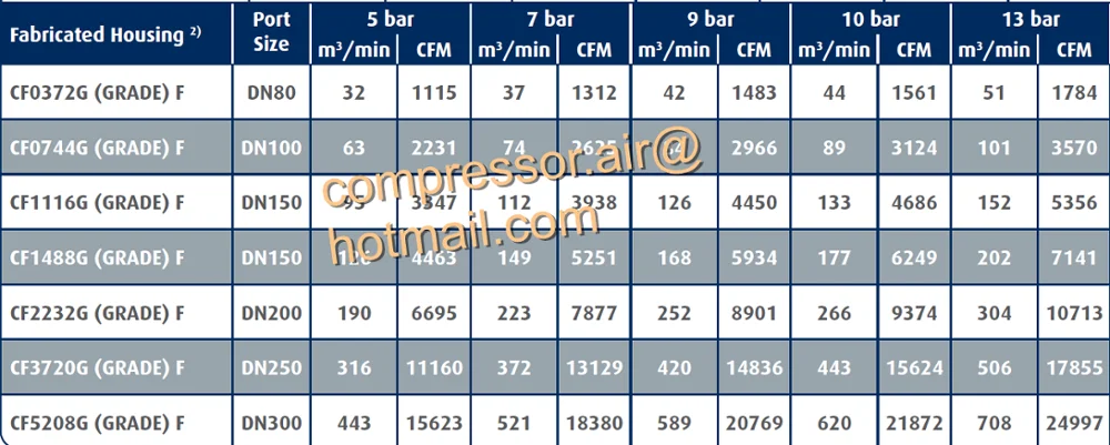 To meet the various requirements, CompAir filters are available in three different grades: