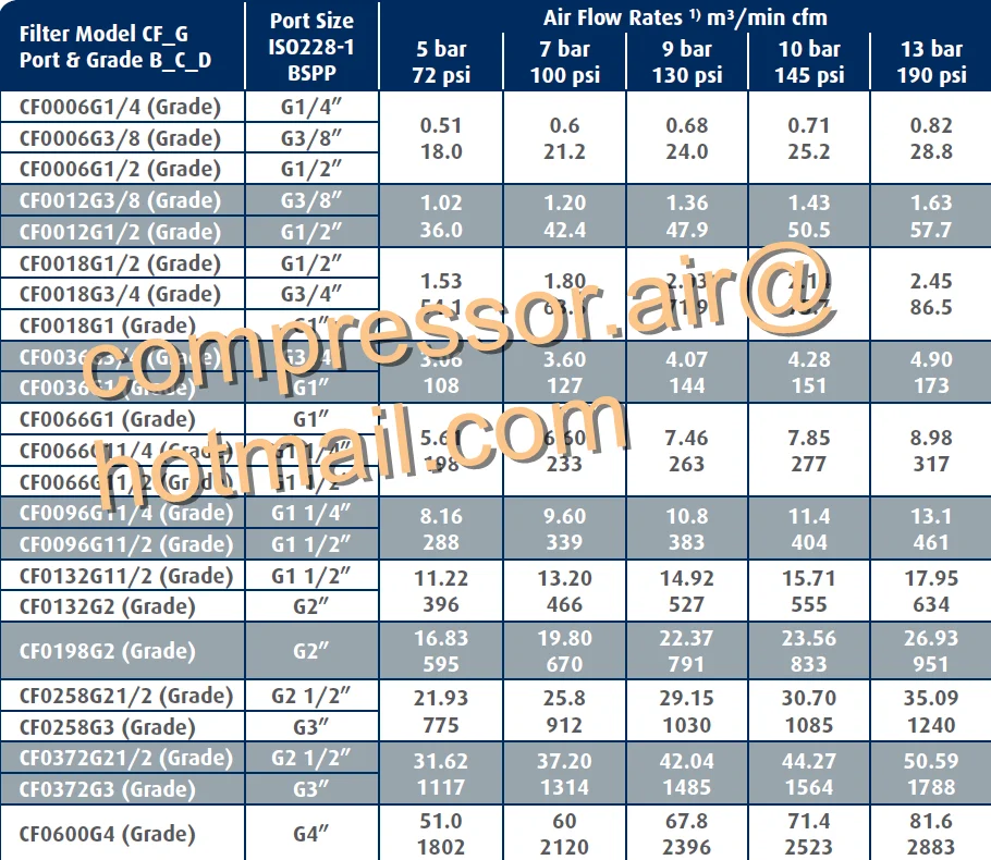 Technical Data - Compressed Air Filter - CF Series