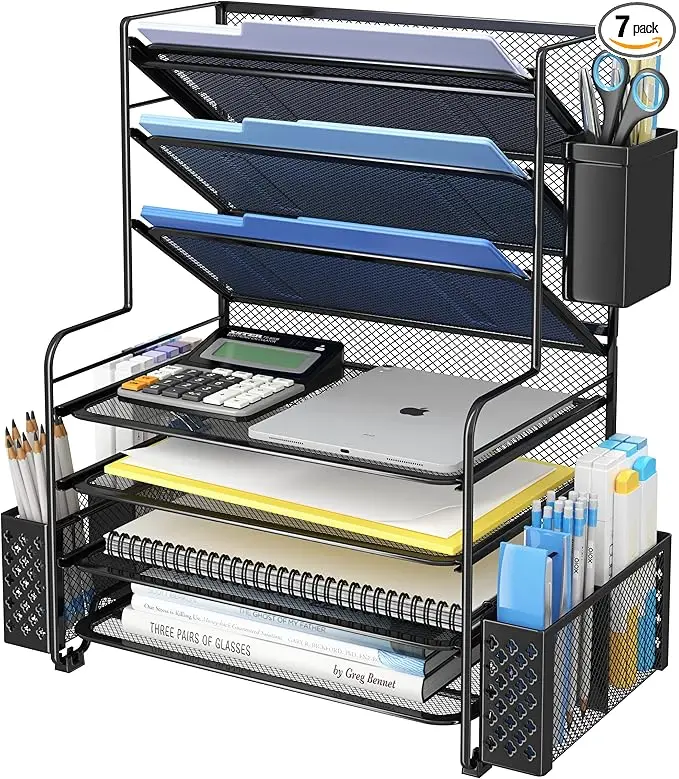 7-уровневый металлический сетчатый органайзер для документов офиса или класса/A4 лоток бумаги с держателем ручек и ящиком стола