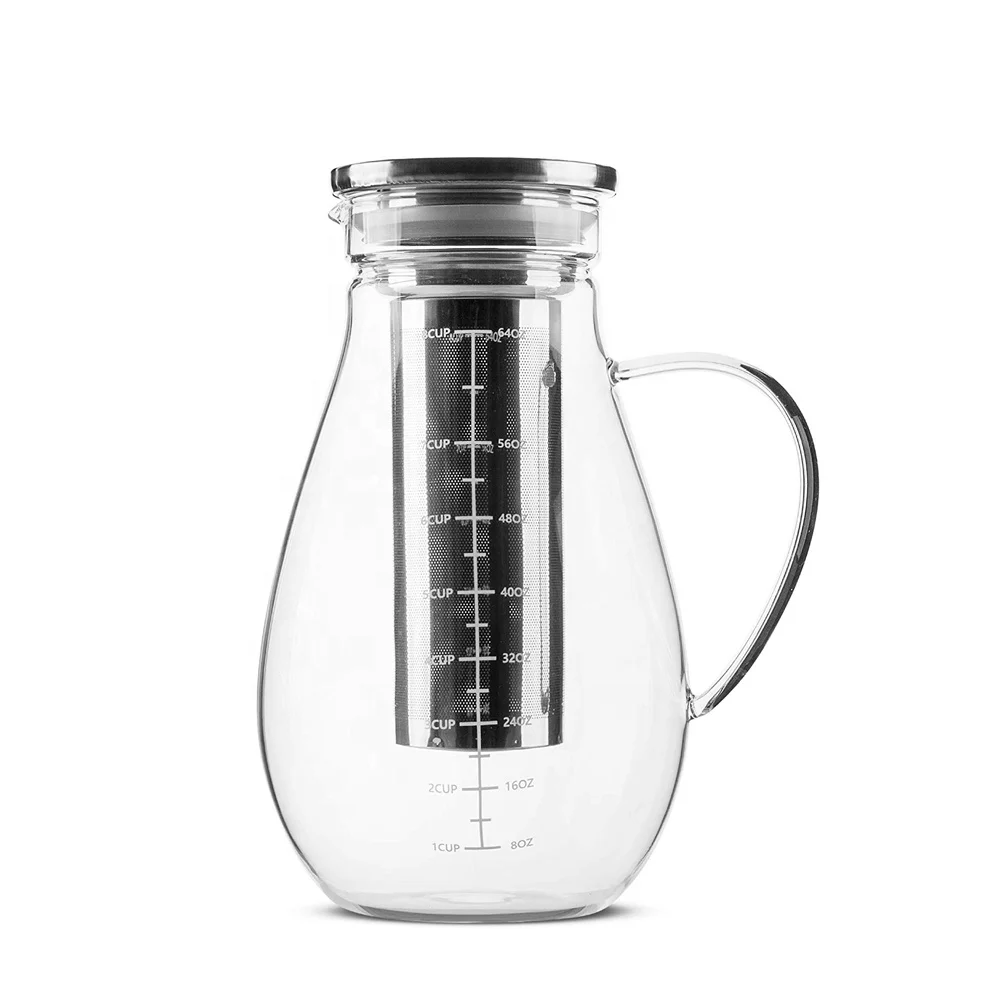 Стеклянный кувшин для холодной воды 64 унции 8 чашек графин со съемным фильтром из нержавеющей стали приготовления холодного кофе