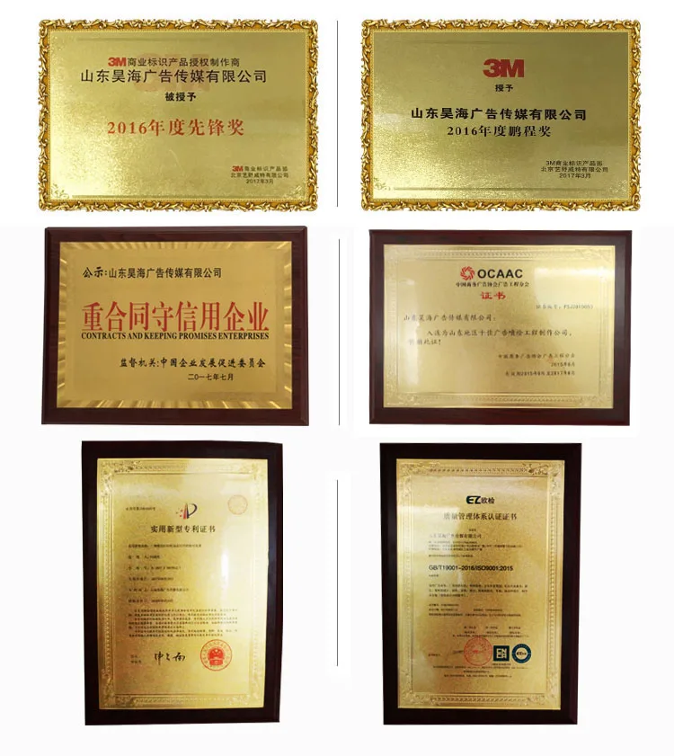 Shandong Haohai рекламные медиа Co. ltd занимает площадь в 7000 квадратных метров, более чем 110 работников, в основном занимается УФ печатная пластина, рулонный материал с принтом, 3 м серии продуктов, двухсторонний спрей и бесшовные сплайсинга световые короба, струйная широкоформатная цифровая печать для помещений и улицы, Акриловые светящиеся персонажи, пластиковые световые коробки, осветление зданий, Система вывесок и т. д. компания ввела 5 высокоточных УФ-печатного оборудования, она ввела более 40 оборудования высокой точности струйной цифровой печатной машины и внутренних и наружных фото принтеров последовательно. Компания имеет группу высококачественных профессиональных дизайнеров и опытных старших инженеров, которые в основном занимаются производством различных видов рекламных продуктов и элементов, что они могут сделать тщательные исследования, показать изобретательность. Превосходный персонал, передовые технологии, сложное оборудование, это делает компанию лидирующим предприятием полиграфической промышленности и завоевал звание «Shandong top ten advertising production company», И это завоевало доверие клиентов, и установило долгосрочные отношения сотрудничества с большой недвижимости. Торговый центр, медиа-компания и так далее.